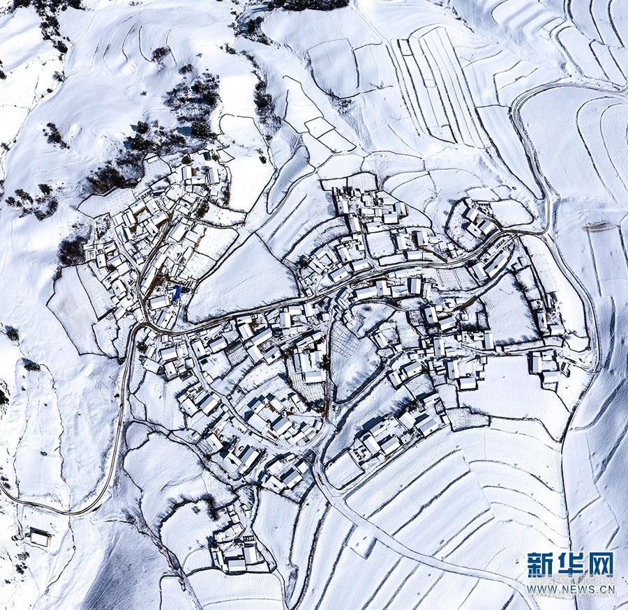 航拍香格里拉雪景 素雅唯美宛如畫